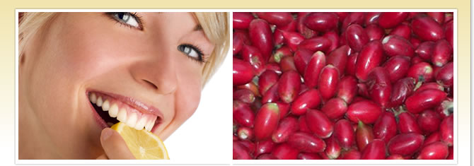 The berry contains an active glycoprotein molecule, with some trailing carbohydrate chains, called miraculin. When the fleshy part of the fruit is eaten, this molecule binds to the tongue's taste buds, causing sour foods to taste sweet. While the exact cause for this change is unknown, one hypothesis is that the effect may be caused if miraculin works by distorting the shape of sweetness receptors "so that they become responsive to acids, instead of sugar and other sweet things". This effect lasts 15-30 minutes. |